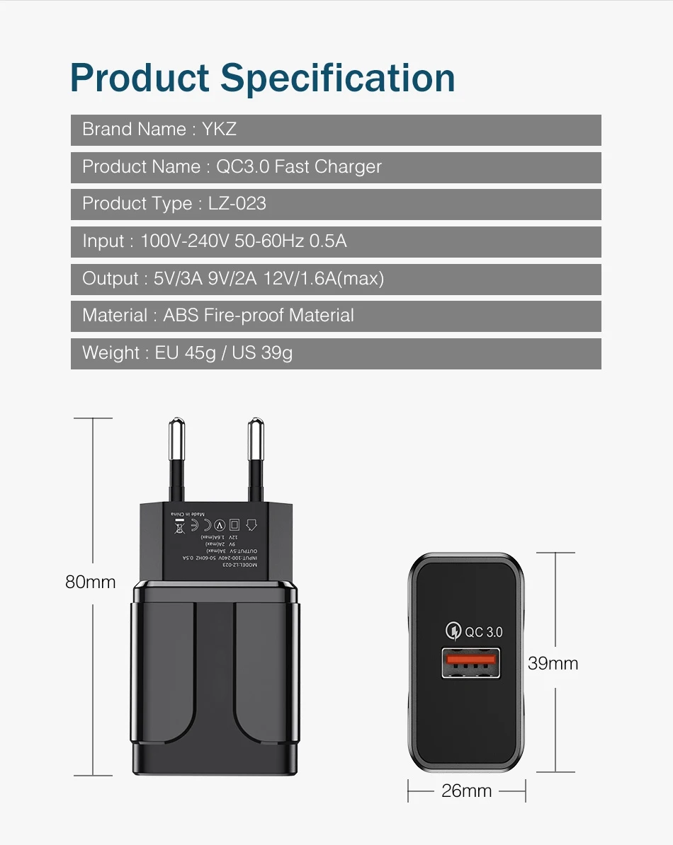 Сетевое зарядное устройство CinkeyPro переходное для мобильных телефонов с вилкой