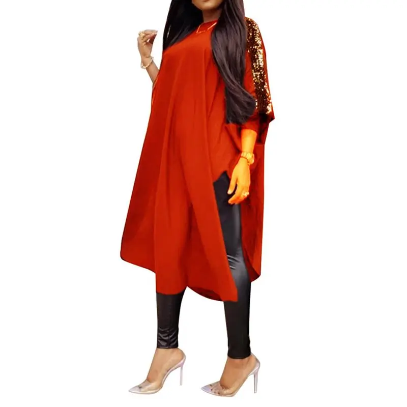 Элегантное женское платье осеннее туника с жемчужным бисером и сетчатым рукавом