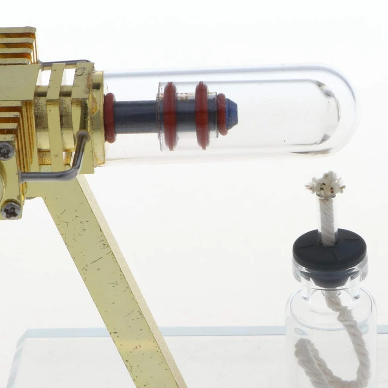 Теория: аналогично двигателю внутреннего сгорания: спиртовая Лампа для сжигания обеспечивает тепловую мощность для расширения газа внутри, затем газовая молекулярная внутренняя мощность увеличивается и сильно работает к пропеллеру
