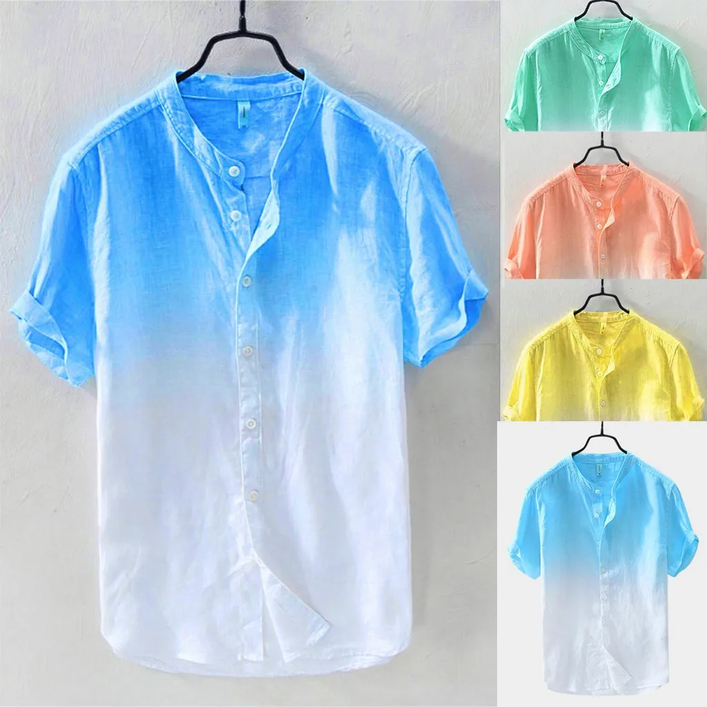 Мужские рубашки chemise homme Повседневная рубашка с коротким рукавом дышащий воротник Висячие окрашенные градиентные хлопковые Блузки Топы Camisa masculina