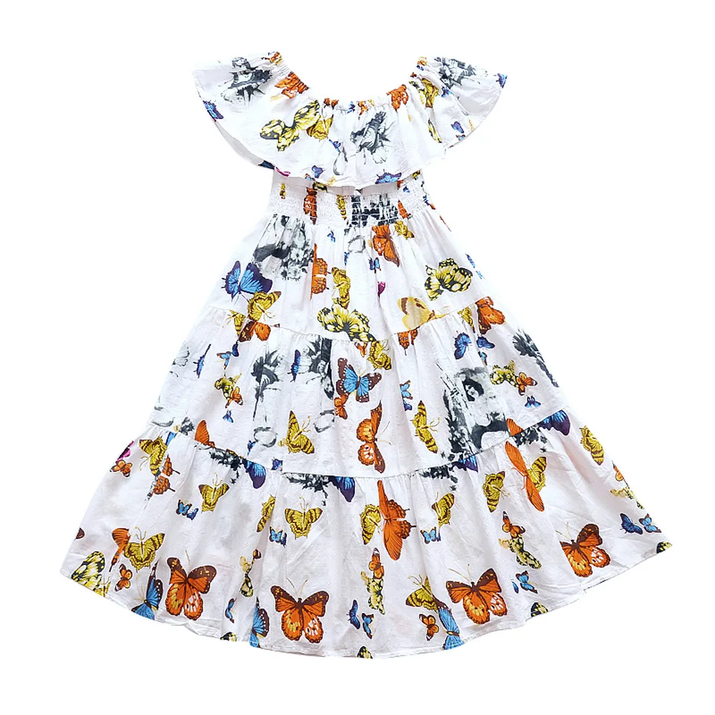 Детское платье принцессы для девочек-подростков с цветочным рисунком и бабочками, рюшами и открытыми плечами