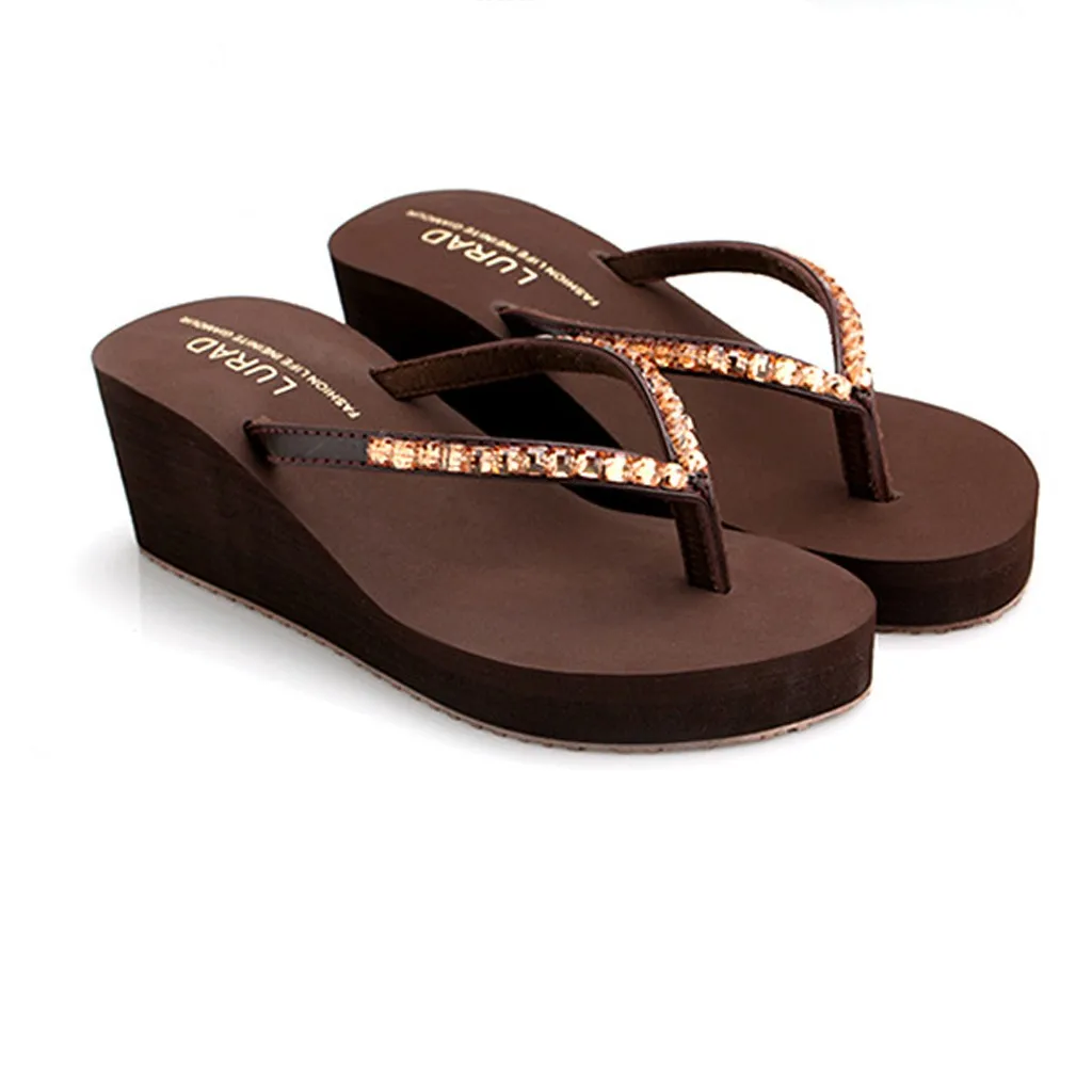 Женские Летние повседневные пляжные Нескользящие Вьетнамки со стразами на толстой подошве