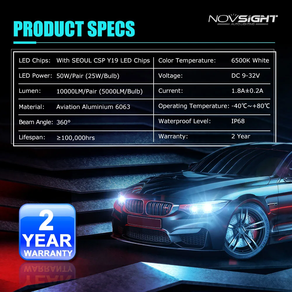 2 шт. H11 H8 светодиодный фары для авто NOVSIGHT 10000LM 12v 24v 50W 6500K белый H4 H7 HB3 HB4 светодиодный лампы для передних фар для авто Стайлинг