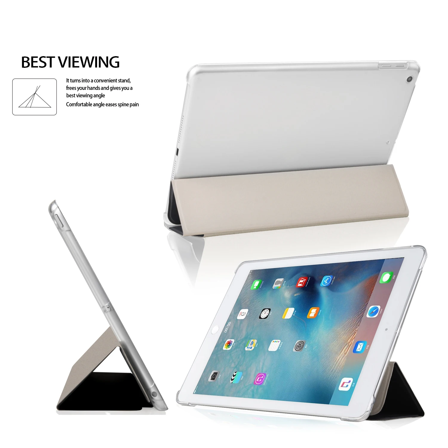 Мощные магниты надежно закрывают переднюю крышку и защищают ваш iPad от царапин. Прозрачный жесткий чехол-накладка поддерживает и защищает iPad.