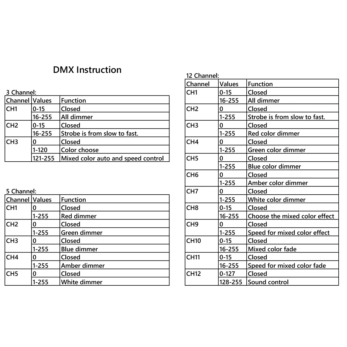 Последний аккумулятор: Один цвет: длится 20 часов Двойные Цвета: хватает на 9 часов Все цвета: хватает на 5 часов Источник питания: AC90V-240V Частота: 50-60 Гц Мощность: 90 Вт Источник света: 15 Вт Высокая яркость 5 в 1 светодиоды RGBAW x 5 Срок службы лампы: 6-10 тысяч часов Угол светодиода: 30 (± 5) градусов Цвет: 16,7 миллионов видов изменения цвета Управление Каналы: 3/5/12 CH Питание от аккумулятора и беспроводное управление DMX Встроенный 2,4G приемник/передатчик для беспроводных операций DMX Режим управления: DMX512, master/slave, auto, sound active Автоматическая модель: изменение цвета, стробоскоп, диммер, постепенное изменение/изменение скачка Меню операции: цифровой дисплей Масса нетто: 7 кг Особенности Со встроенным 2,4G беспроводным приемником DMX 512 (DA-WDMX-PCB) Перезаряжаемая батарея :( 12 V 12000 мА · ч) Идеально сочетается с 2,4 беспроводным DMX 512 передатчиком (DA-WDMX-LCD) Lux: 6000 @ 1 m Импульсный источник питания светодиодного табло Электронный линейный диммер: 0-100% Высокоскоростной Электронный стробоскоп: 0-20/с 3-контактный DMX и DMX выход Двойной кронштейн Пакет включает в себя: 2x свет 2x шнур питания и DMX шнур 2x инструкция по эксплуатации 2x пульт дистанционного управления