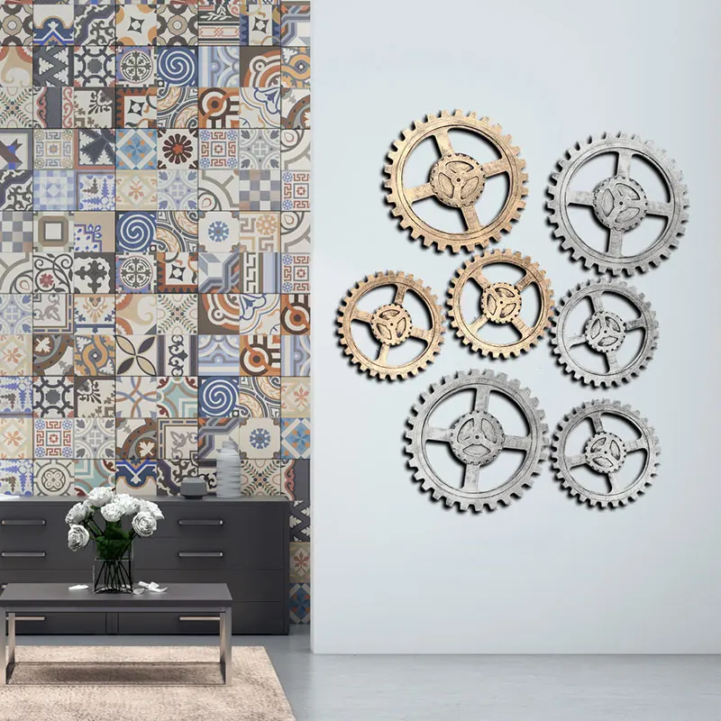 Один кусок Ретро шестерни бар Гриль наклейки на стену личность волос салон Настенный декор промышленные украшения комнаты ветровые орнаменты