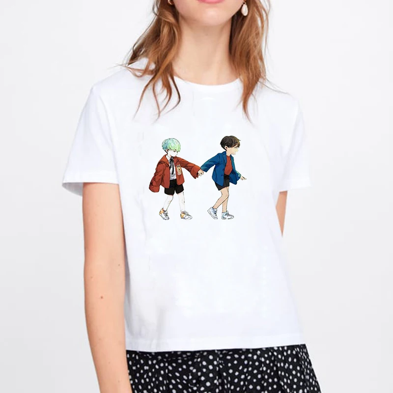 Harajuku Kawaii/футболка с буквенным принтом; Модные топы в Корейском стиле; Tumblr; Черные женские футболки с круглым вырезом; Футболка с короткими рукавами; Kpop; Топ USD 5,98/Шт/Лот 1