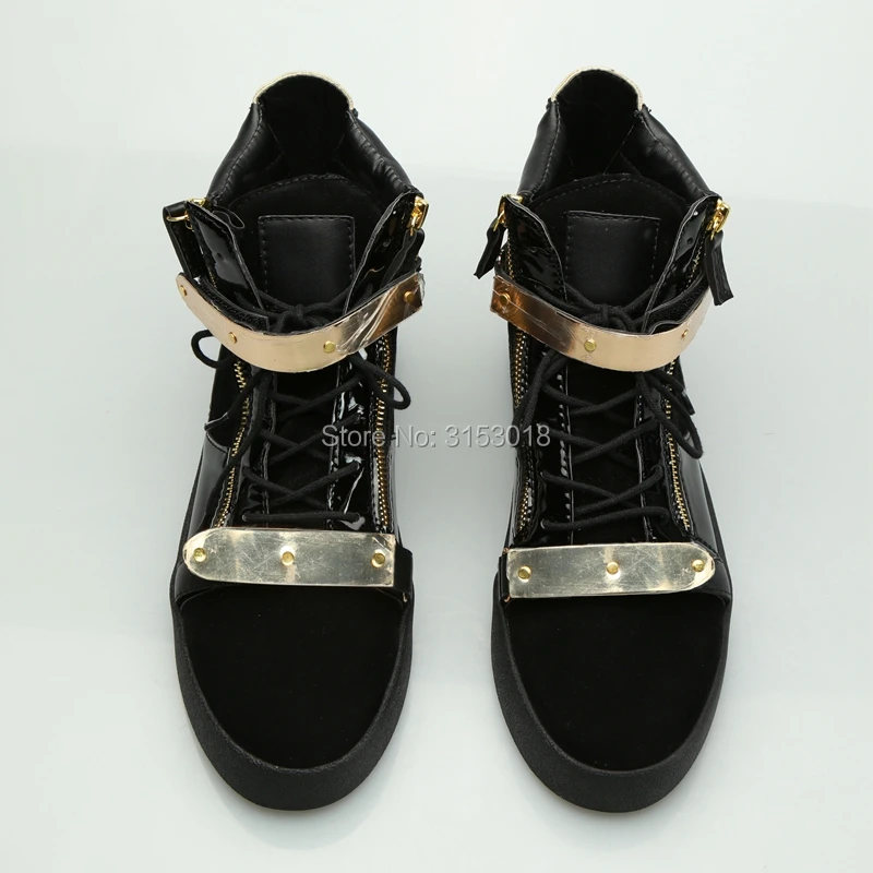 Название продукта:Лидер продаж; Модная черная повседневная мужская обувь в стиле пэчворк; Мужские кроссовки на плоской подошве со шнуровкой и золотым металлическим украшением на молнии сбоку