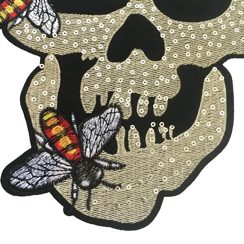 Вышивка пчелы черепа патчи для куртки большой пчелы скелет головы блестками аппликации шитье DIY наклейки