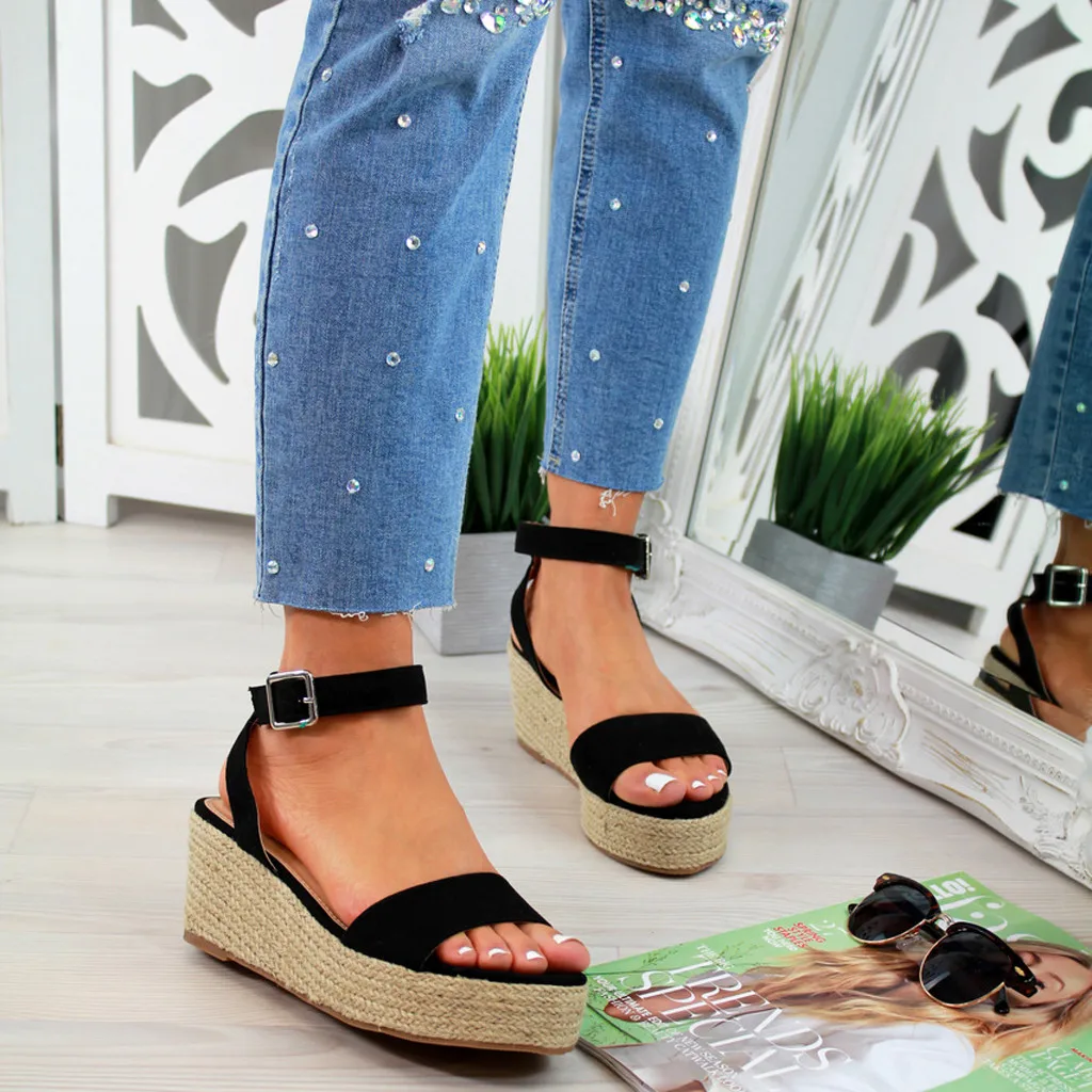 Женская пряжка на лодыжке с ремешкомПлатформаТканые Сандалии на танкеткеРимскийОбувь