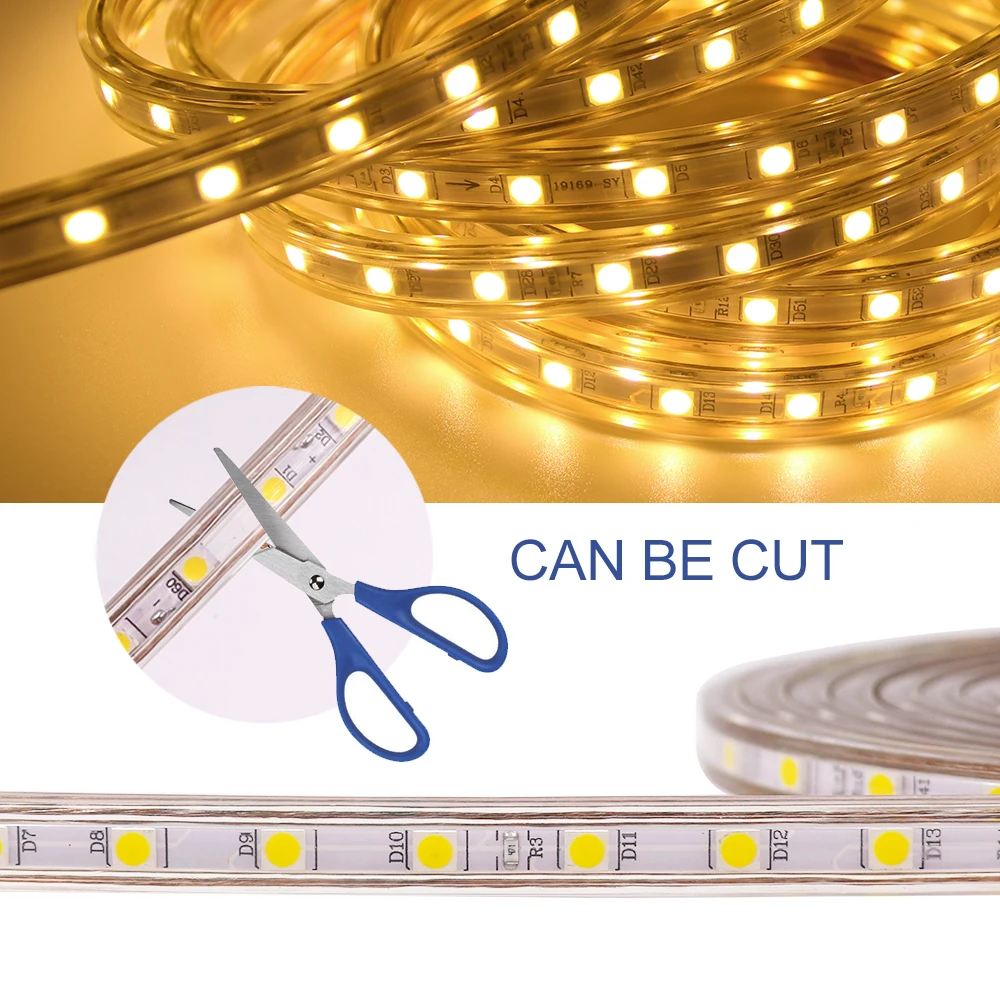 5050 Светодиодный светильник 220 в 60 светодиодный s/m водонепроницаемый гибкий ленточный светильник с переключателем штепсельная вилка EU/UK светодиодный светильник-полоска для наружного помещения