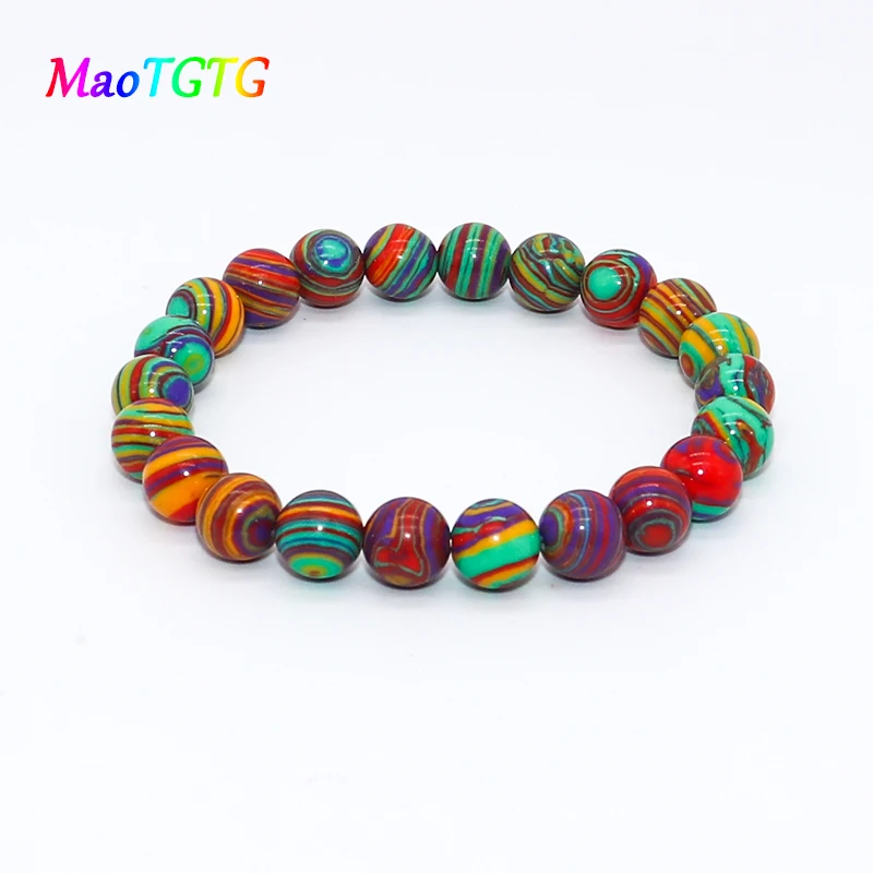 8 мм Красочные малахитовые браслеты для женщин, Ручные ювелирные изделия, тянущиеся браслеты для йоги, женские вечерние браслеты, подарки