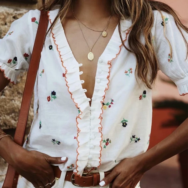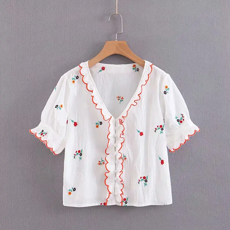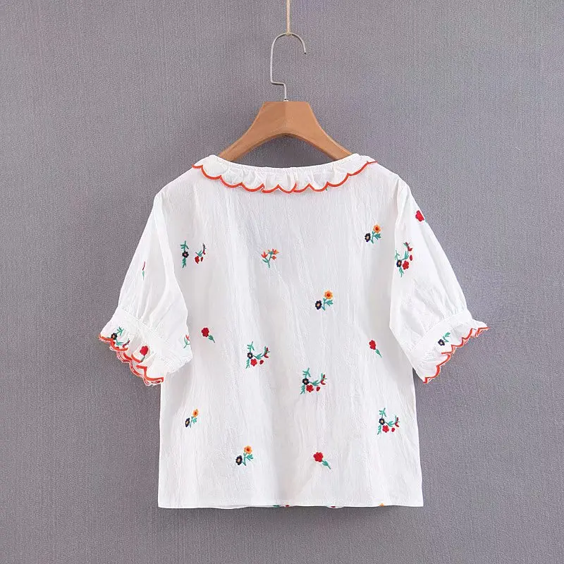 Новая женская винтажная Повседневная рубашка с халатом вышивкой блузка рукавом