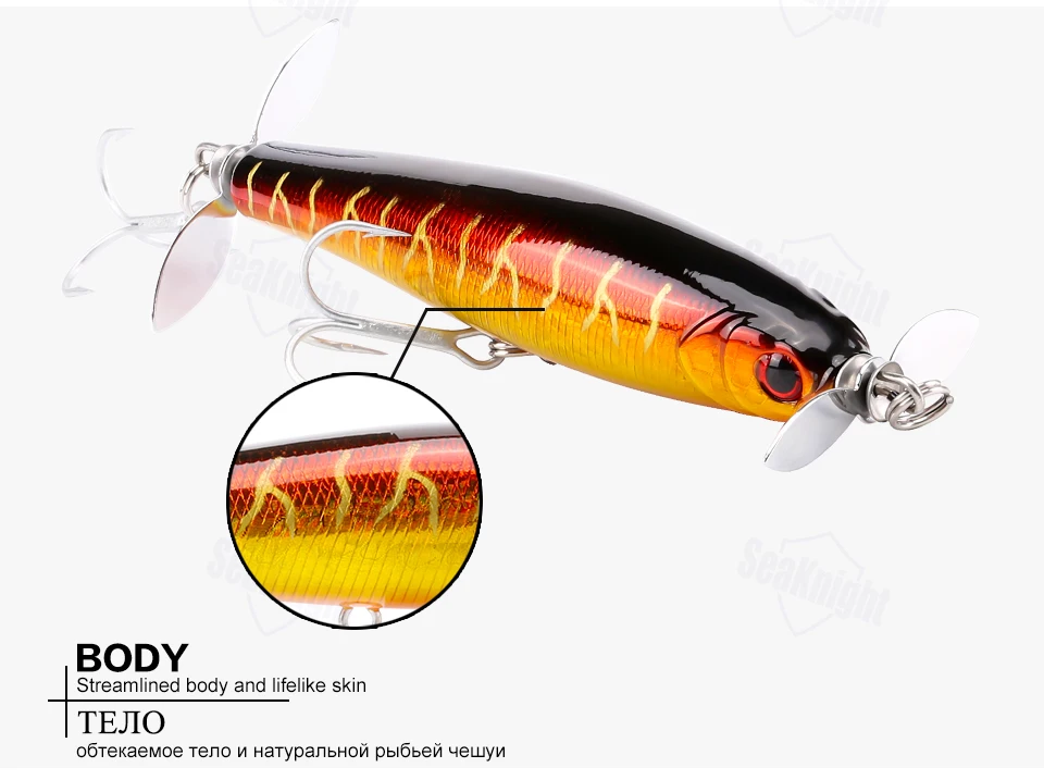 Особенности: 1. Острые крючки VMC: оснащено оригинальными французскими VMC крючками, антикоррозийные, мощная, прочная, пресная вода морская вода универсальная. 2. Имитация кожи рыбы (лазер): дизайн кожи рыбы делает ее более привлекательной для большой рыбы. 3. Металлические шарики: шарики из нержавеющей стали внутри, чтобы сохранить баланс приманки, для дальнего заброса расстояния. 4. Более прочные Бициклические Кольца: укрепляет двойной круг, повышая устойчивость к тяге. 5.3D глаза рыбы: 3D-глаза, большие и яркие, более Соблазнительные, светоотражающие, лучше. 6. Упаковка продукта: каждая наживка упакована в красивую коробку из ПВХ для розничной продажи. Подробнее о товаре: Бренд: SeaKnight Модель приманки: Pencil SK034 Тип приманки: жесткая рыболовная приманка Вес приманки: 14,5 г/0,51 унций Длина приманки: 90 мм/3,54 дюйма Глубина погружения: Приманка Topwater Плавность: плавающая приманка Крючки: 2 крючка VMC Глаза: 3D рыбные глаза Кольца: велосипедные 5 цветов: L01,L02,L03,L04,L05 Упаковка: Вес изделия: 35 г Вес посылка: 50 г Посылка-лист: 1 шт. * Рыболовная Приманка (можно выбрать цвета: L01,L02,L03,L04,L05)