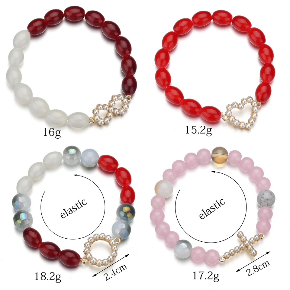 Новый двухцветный Овальный женский браслет с натуральным кристаллом, самодельный жемчуг ручной работы, бесконечный браслет с восьмисловом, браслет с холодными бусинами