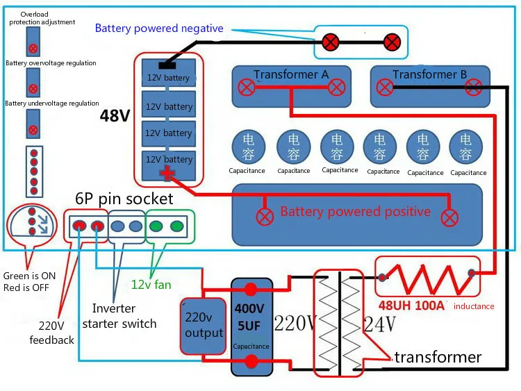 Пожалуйста, обратите внимание на покупателя: в вышеуказанном напряжении питания батареи. Если трансформатор не соответствует (например, обычный источник питания аккумулятора 48 вольт для использования переменного тока 220 об/мин AC выход 24-28 в трансформатор. В результате вы использовали AC 220 rpm AC выход 32V трансформатор) таким образом, инвертор будет иметь выходное напряжение 220V, который не регулируется. Поэтому важно выбрать параметр напряжения трансформатора.
