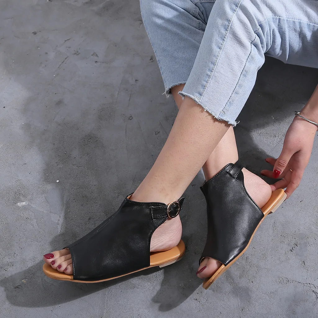 Женские модные повседневные сандалии с открытым носком на плоской подошве с пряжкой
