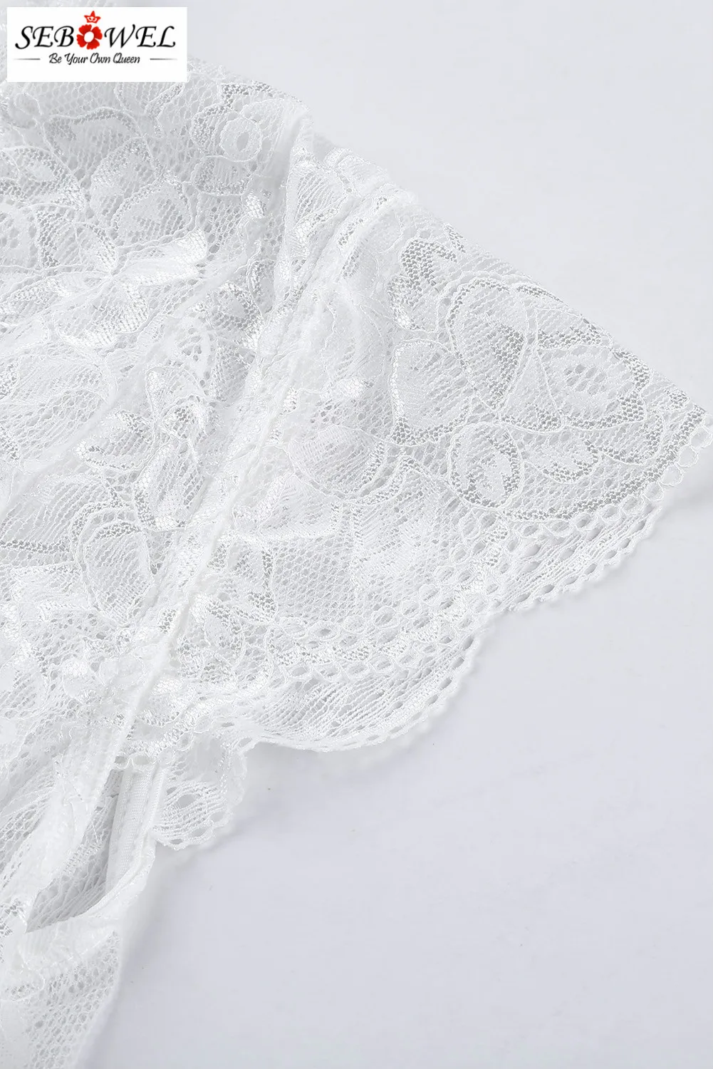 SEBOWEL Женский Черный Боди белый ажурный сетчатый кружевной боди с коротким рукавом Летний Топ Mujer одежда для плавания Боди Пляжная Новинка 2021