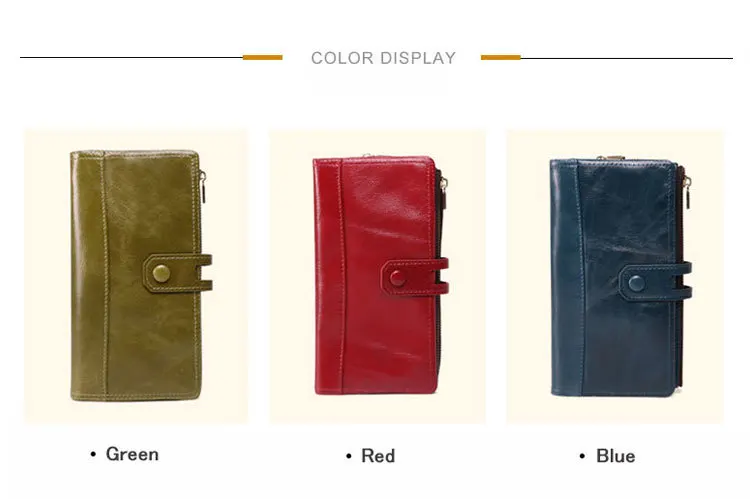 Уважаемый покупатель, мы поддерживаем Розничные, оптовые, прямые поставки и, пожалуйста, свяжитесь с нами, если у вас есть какие-либо проблемы. Надеюсь, вам понравится наш сервис. Спасибо! Информация о продукте Название: женский кошелек Материал: натуральная кожа Цвет: зеленый, красный, синий Размер бумажника: 19*10*3 см Пожалуйста, свяжитесь с нами, если у товара есть какие-либо проблемы, когда вы получите товар, мы предоставим вам лучшее решение