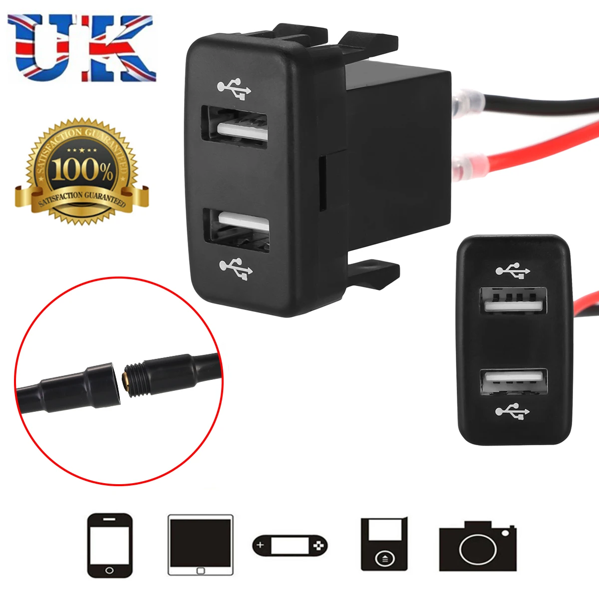 Два порта USB с максимальным током 4.2A, подходит для большинства мобильный телефон, планшет, DVR и т. Д.