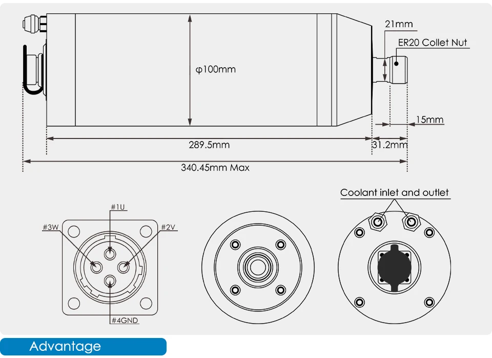 ER20 220 В 380 В/кВт 80 мм/85 мм шпиндель с ЧПУ гравировальный станок для дерева водяным