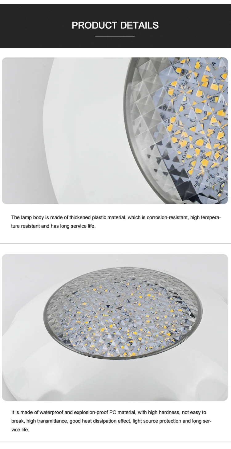 Светильник источник света: светодиодный Входное напряжение (В):12 Мощность лампы (Вт):18/25/35/45 Ip-рейтинг: IP68 Сертификация: CE, RoHS Материал корпуса лампы: АБС-пластик Материал: АБС + Поликарбонат Напряжение: 12 В/24 В Гарантия: 2 года Размер: D260 * h70 мм Кабель: 1,5 м кабель Один посылка Размер: 27X27X13 см Одиночный вес брутто: 1,3 кг