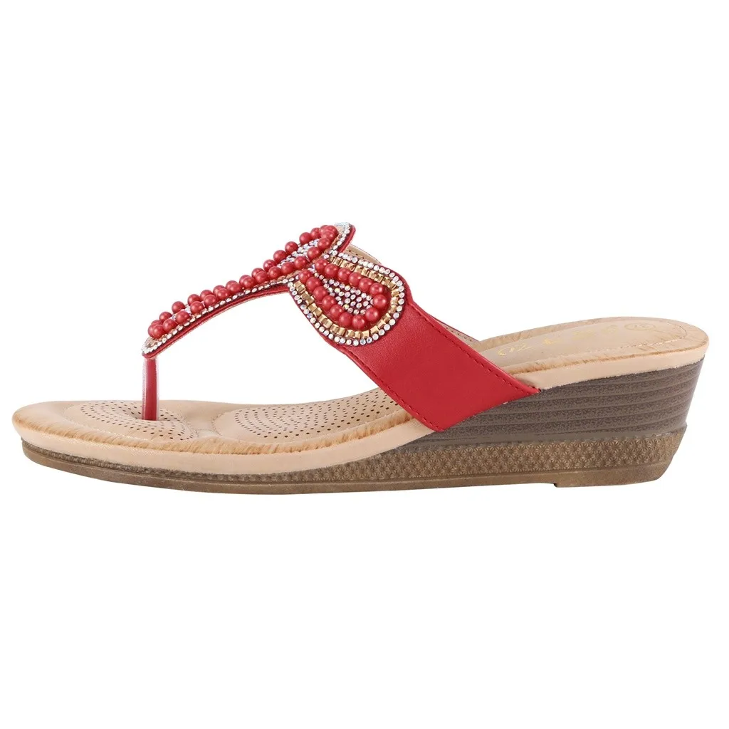 Женская обувь в богемном стиле, украшенная кристаллами, на плоской подошве; Вьетнамки с Т-образным ремешком; Летняя обувь с бусинами