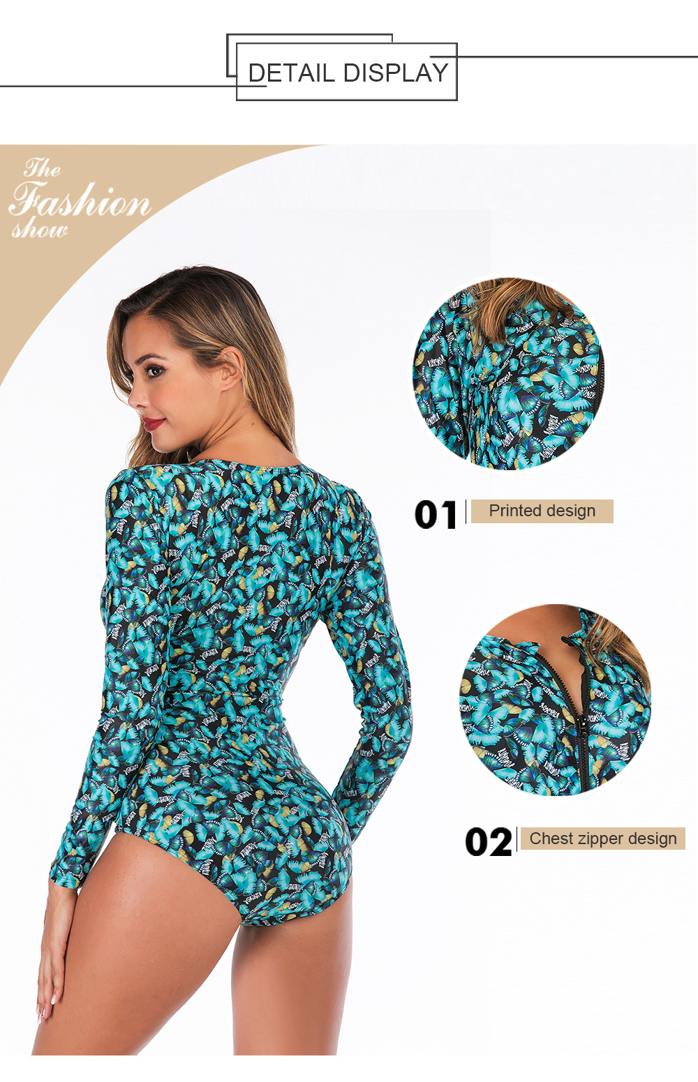 Женский купальный костюм с цветочным принтом, костюм для серфинга на молнии спереди, S-2XL, 2019