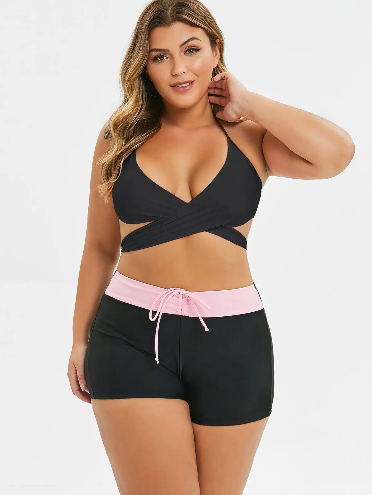 Wipalo размера плюс Холтер крест-накрест Бикини Набор Высокая талия Купальники два тона женский свободный купальник купальный костюм спортивная одежда
