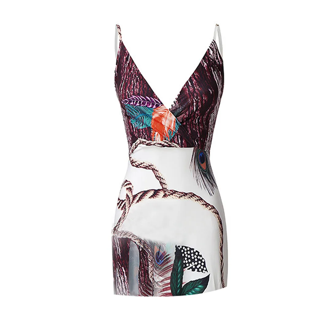 Женское Повседневное платье-комбинация с принтом перьев павлина