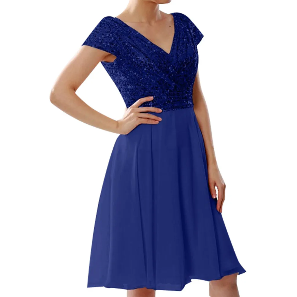 Женское винтажное шифоновое платье с коротким рукавом и глубоким v-образным вырезом Sukienka 50, 2019