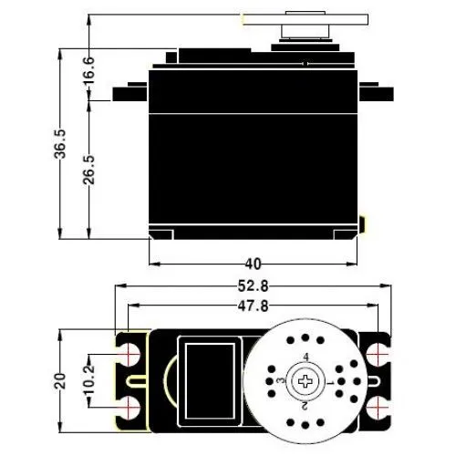 Крутящий момент, крутящий момент: 13 кг-см (180,5 унций) при температуре не выше 4,8 V
