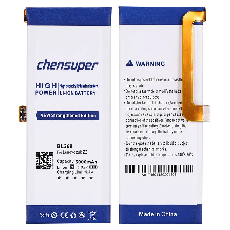 Описание: 1. Литий-ионный аккумулятор: BL268 2. Напряжение: 3,8 V 3. Емкость: 5000 мАч 4. Использование: Для Lenovo ZUK Z2 Z2131 5. Безопасность и окружающая среда: двойные функции защиты. Двойная IC и PCB электрическая плата защищают от разряда заряда и короткого замыкания. 6. Наша батарея одного размера с оригинальной батареей. 7: Сделано в Китае Пожалуйста, обратите внимание: > Аккумулятор должен быть полностью заряжен перед использованием. > Временная короткая емкость нового аккумулятора будет получена в результате длительного использования, это нормально, общая емкость будет восстановлена через используется в течение 3-5 раз. > Когда сначала получите аккумулятор, используйте его, заряжайте в течение 10 часов в течение первых трех раз, используйте его снова, затем ему нужно только зарядить около 5 часов для нормального использования. > Не используйте низкое зарядное устройство, чтобы зарядить этот аккумулятор в чехол от повреждения аккумулятора. > Не разбирайте и не меняйте структуру аккумулятора. > Не помещайте аккумулятор в зарядное устройство слишком долго. > Не подвергайте аккумулятор воздействию влаги и воды, не помещайте его в высокотемпературную среду. > Не влияет на батарею. > Поставьте его вне досягаемости детей. > Лучшая температура хранения составляет 20 °C-5 °C