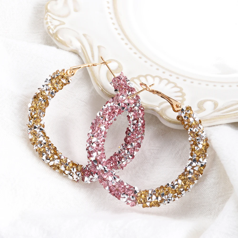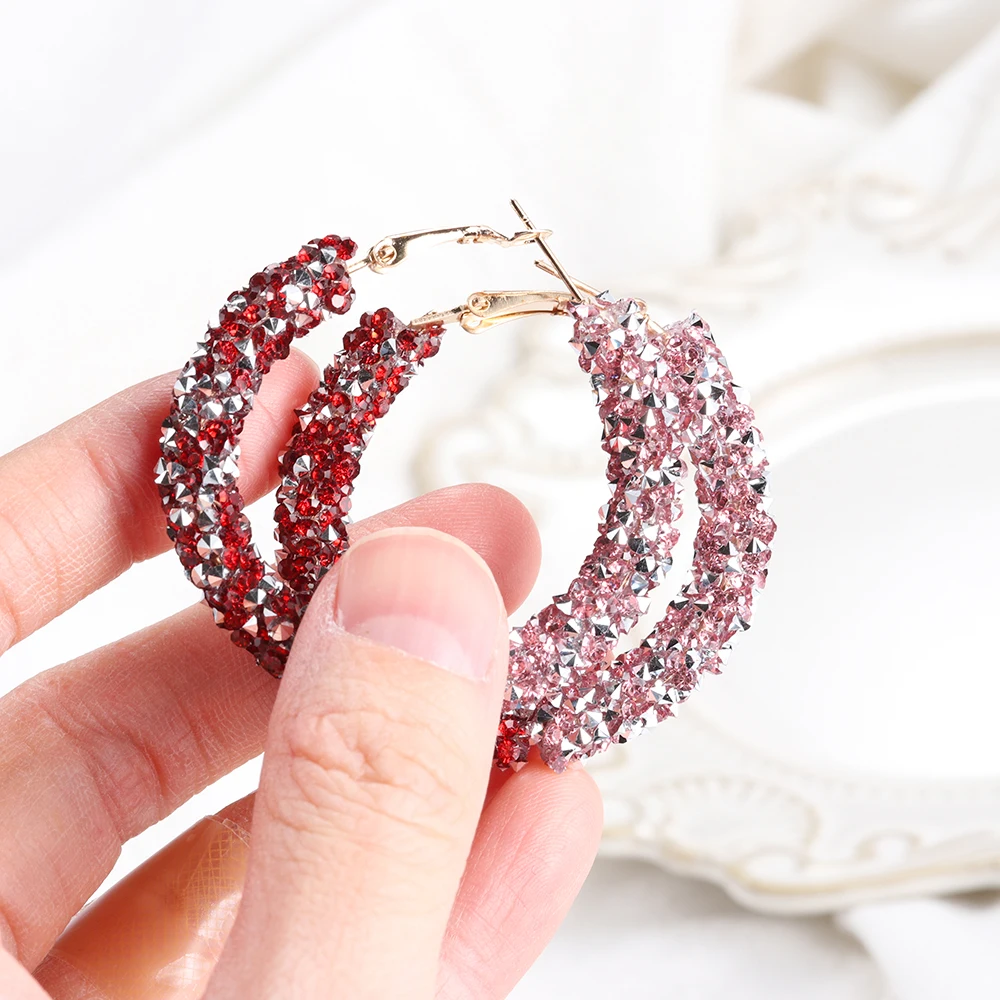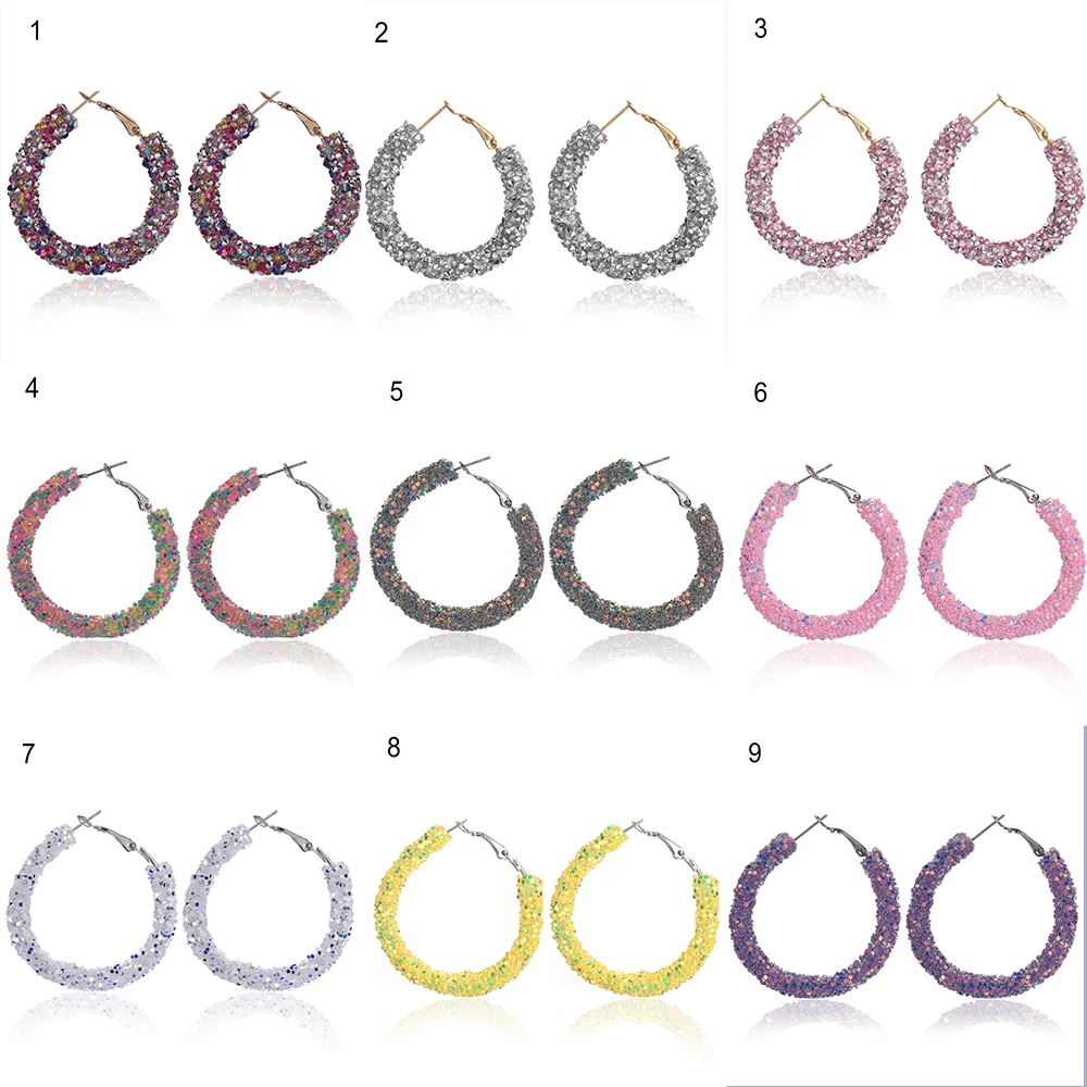 100% новый и высокое качество Материал: сплав, хрусталь Цвет: 9 цветов на выбор Размер: 6,5*5 см Стиль: Корея Посылка включает в себя: 1 пара сережек