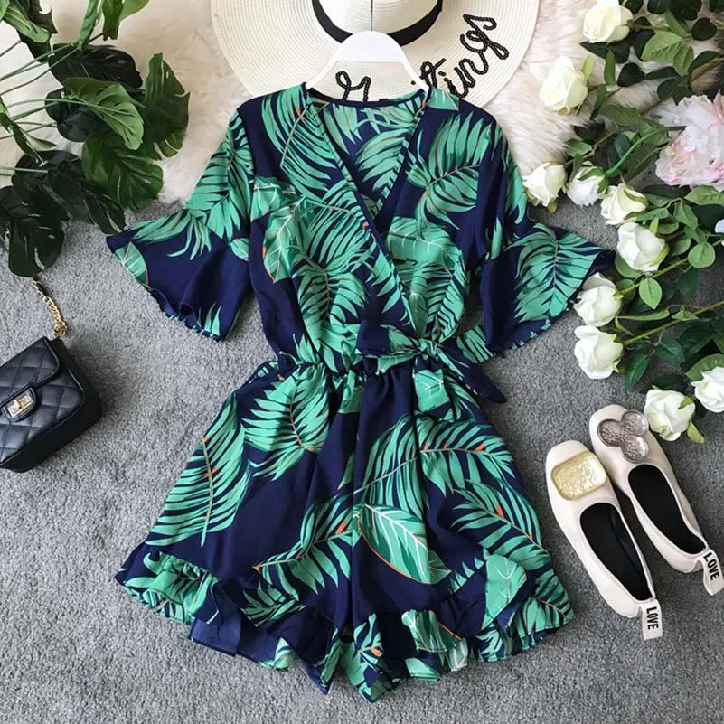 Женский пляжный стиль кружевной комбинезон с поясом короткий рукав вышивка на