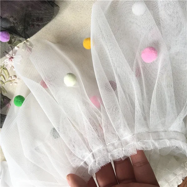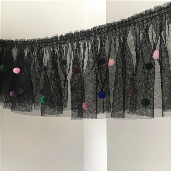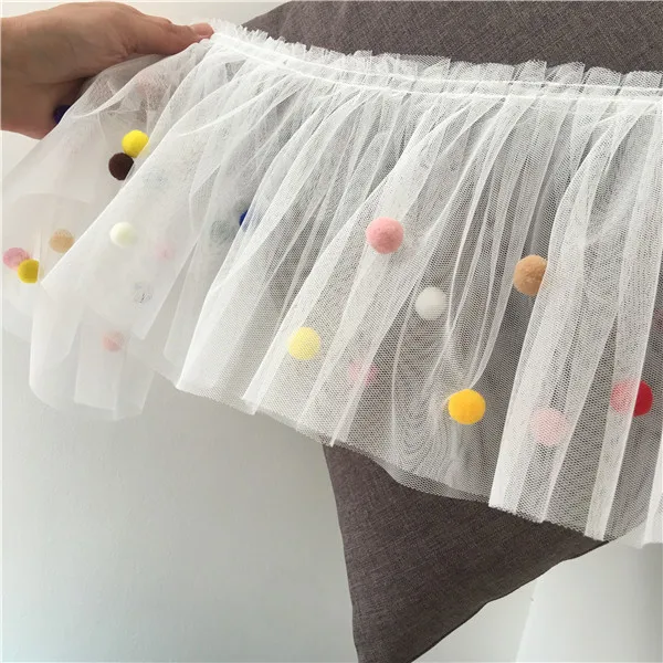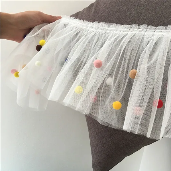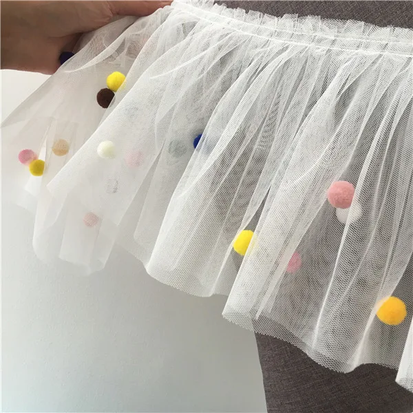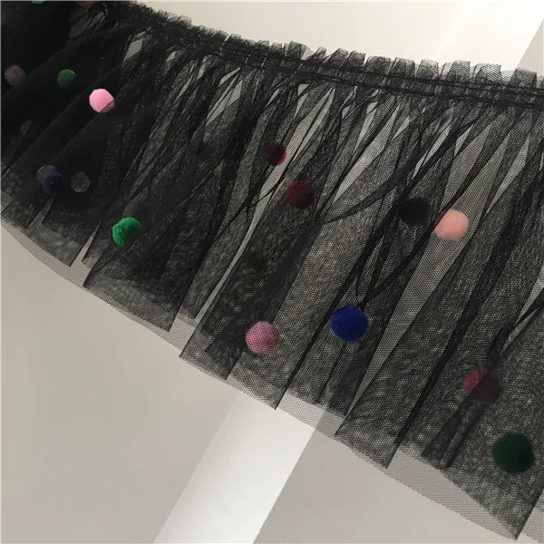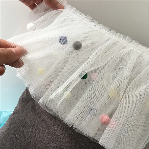 17CM Wide 3D Lace Collar Applique Embroidery Colorful Pompom Trim Girls Fluffy Dress Curtains Fringe Guipure Sewing Accessory