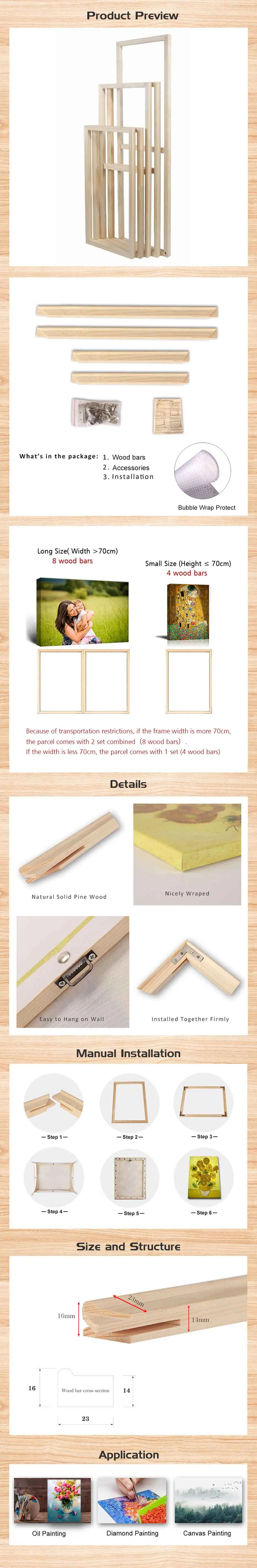 • Найдите идеальную рамку для вашего шедевра! Нужна твердая деревянная рама любого размера для вашей картины маслом? Хотите элегантную рамку для вашего настенного искусства или алмазные картины, которые вы покупаете? Здесь, в Kingsmile, мы можем создать прочную DIY рамку для ваших холстов (любой размер вертикального прямоугольника, горизонтального прямоугольника, квадрата) • Обратите внимание! Вот как измерить идеальный размер для вашего холста! Наш холст деревянная рамка стержни имеют 1,6 см толщиной, таким образом, вам будет необходимо убедиться в том, что ваш холст имеет дополнительный 6-8 см материала (для того, чтобы обернуть его вокруг рамки). Ваш холст должен быть больше, чем ваш каркас. • Супер-легко собрать комплект холщовой рамы! Все, что вам нужно, это крестовая отвертка. Вот это. Не нужны плоскогубцы, клей или любые другие инструменты. Наша рама для носилок очень легко складывается, благодаря хорошо изготовленным стержням, которые идеально сочетаются по углам. • Вся сосновая древесина импортируется из России, и мы тщательно подобрали древесину без узлов, затем сушите в печи до содержания влаги ниже 8%, чтобы убедиться, что ваше растянутое изображение остается плотно на месте. • Удивите своих близких вдумчивым подарком! Ваши дети нарисовали новую картину маслом? Вы хотите напечатать семейное изображение на холсте? Сделайте это самостоятельно, деревянная Картина на холсте, обрамляющая набор и испорчите Ваших близких красиво оформленным подарком! Чего вы ждете?