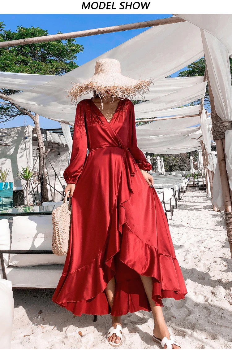Женское бордовое Макси вечернее платье с открытой спиной Элегантное летнее длинное пляжное платье винтажное корейское подиумное платье