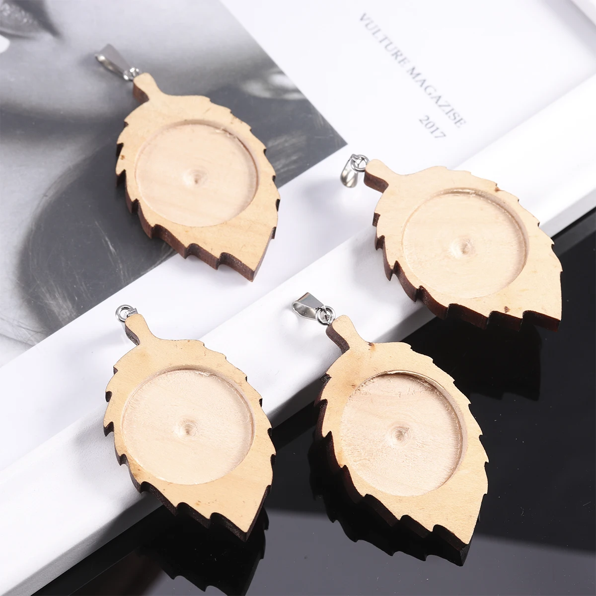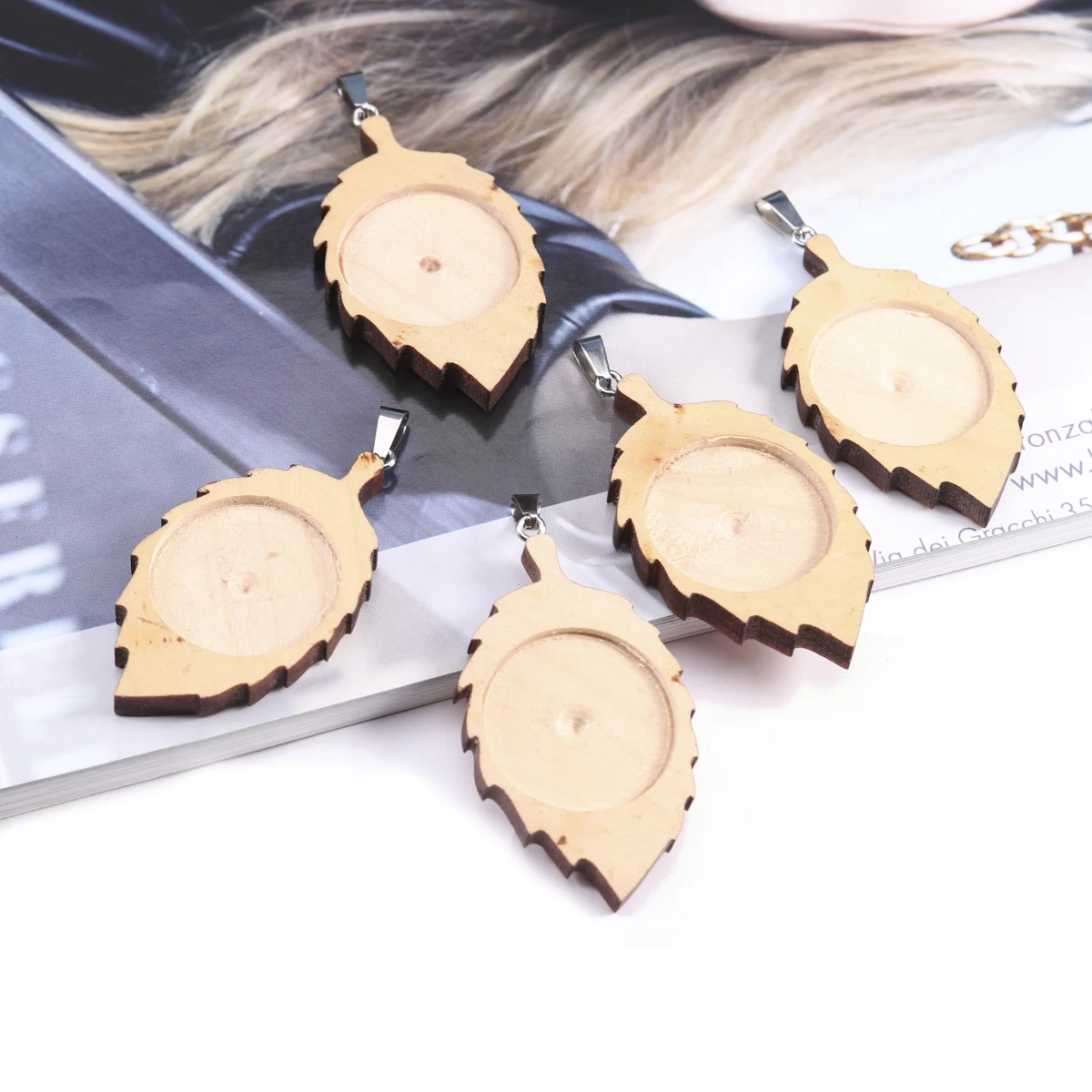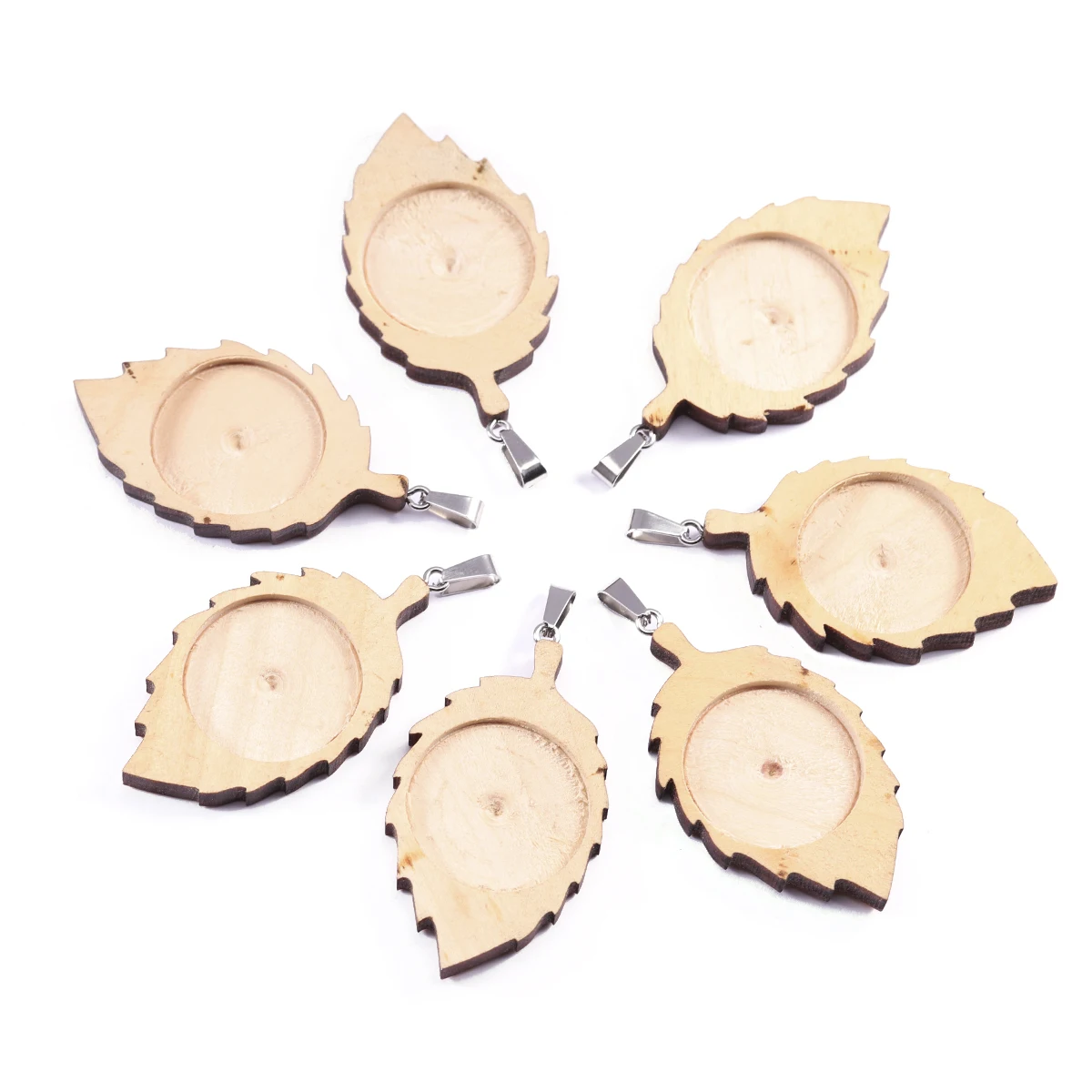 10 шт 28*50,5 мм кулон с листом драгоценных камней подходит 25 мм круглый деревянный кабошон базовая пустая деревянная подноса DIY ювелирных изделий ожерелья серьги