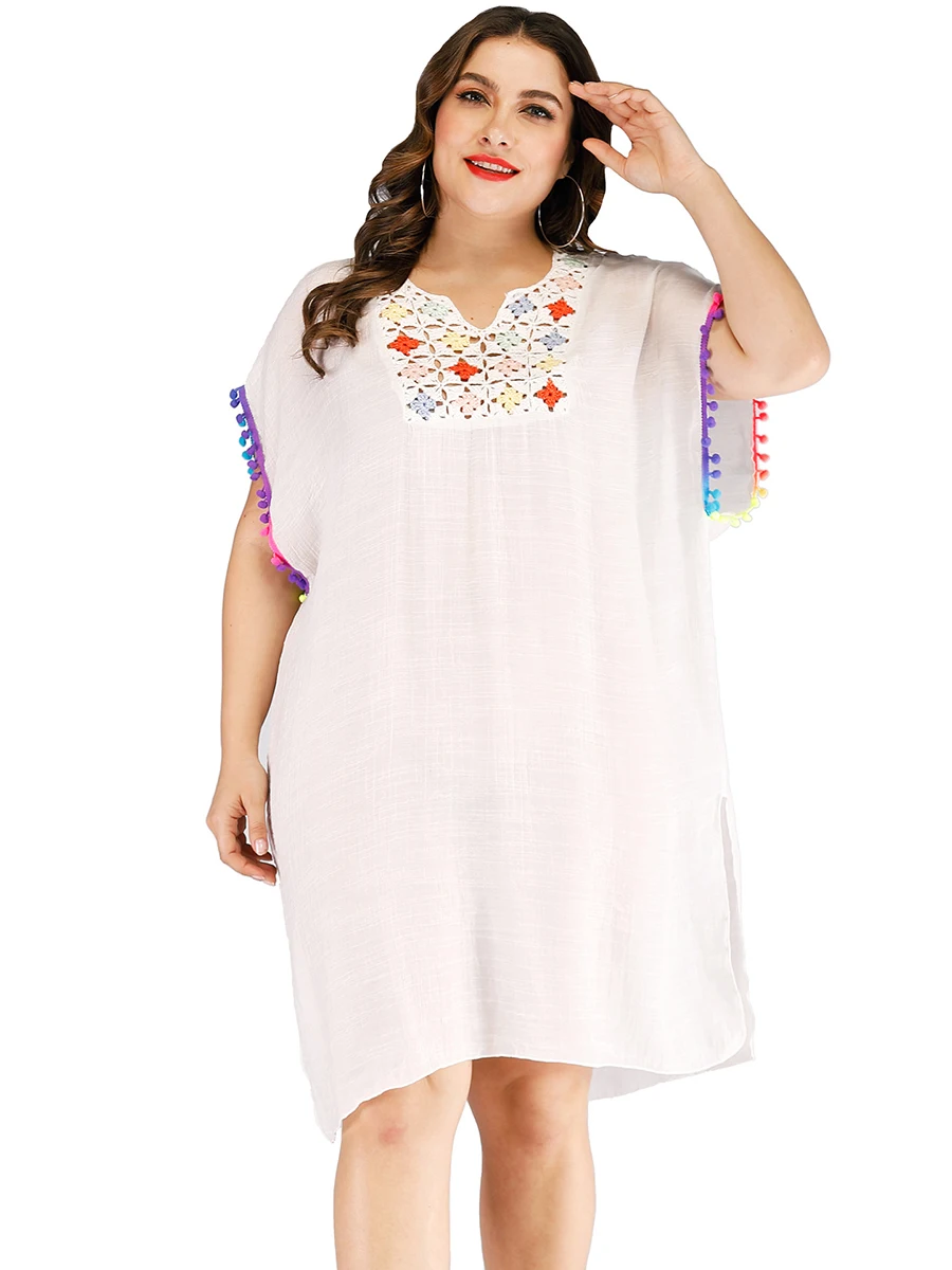 * Описание товара: летние Для женщин женские, повседневные, свободные плюс Размеры короткий рукав в богемном стиле с бахромой короткое платье;