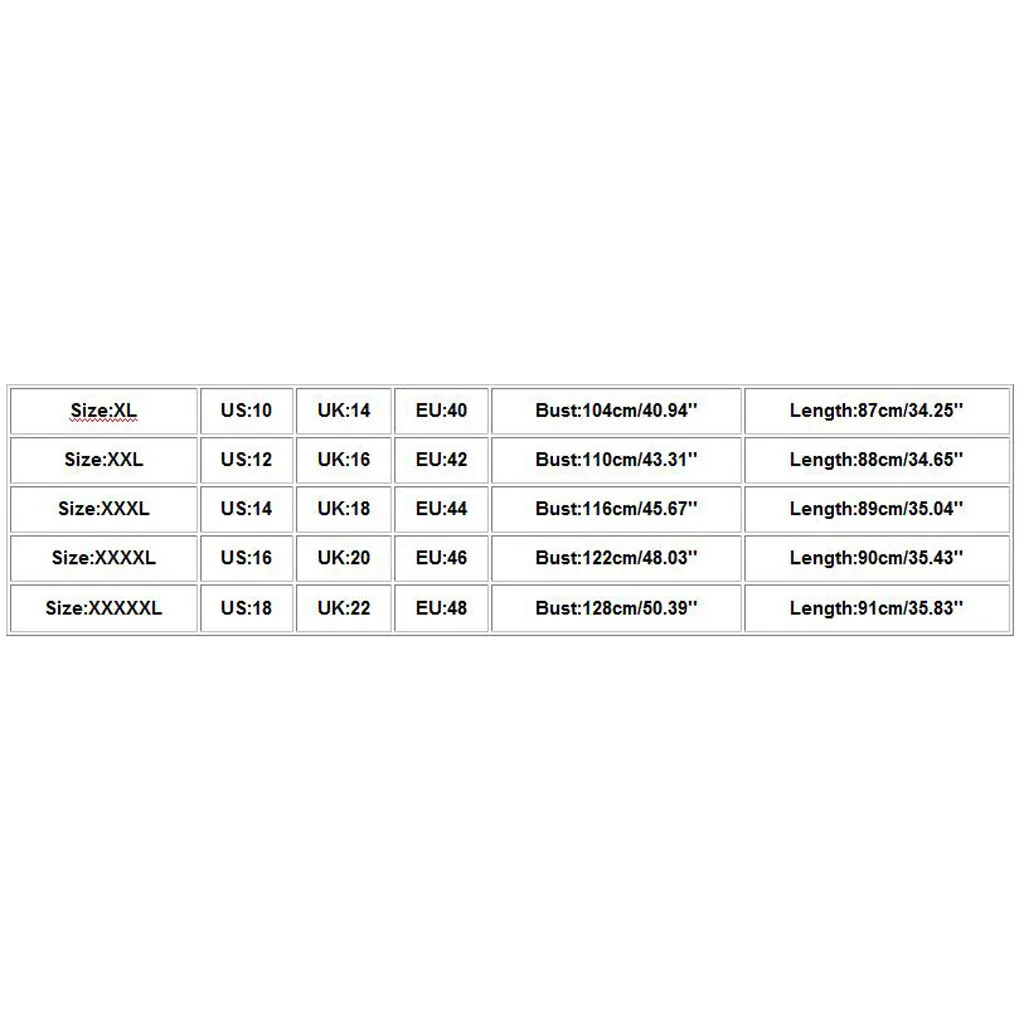 | Размер: XXXXL | США: 16 | Великобритания: 20 | ЕС: 46 | Обхват груди: 122 см/48,03 дюйма | Длина: 90 см/35,43'' |