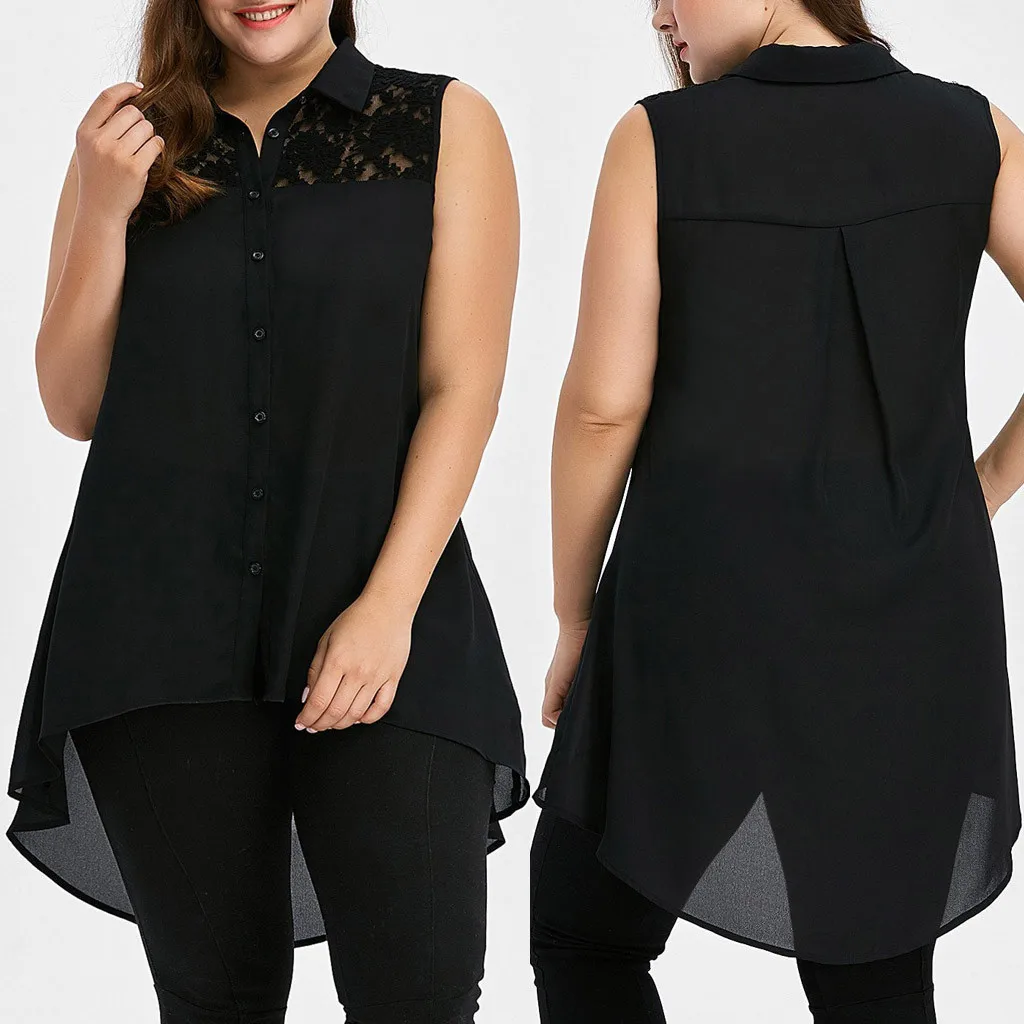 Особенности: большой размер, кружево, Высокие Низкие топы, Асимметричная футболка без рукавовОднотонные Топы; повседневная одежда; стильный и модный дизайн; Летние повседневные топы; футболка больших размеров.