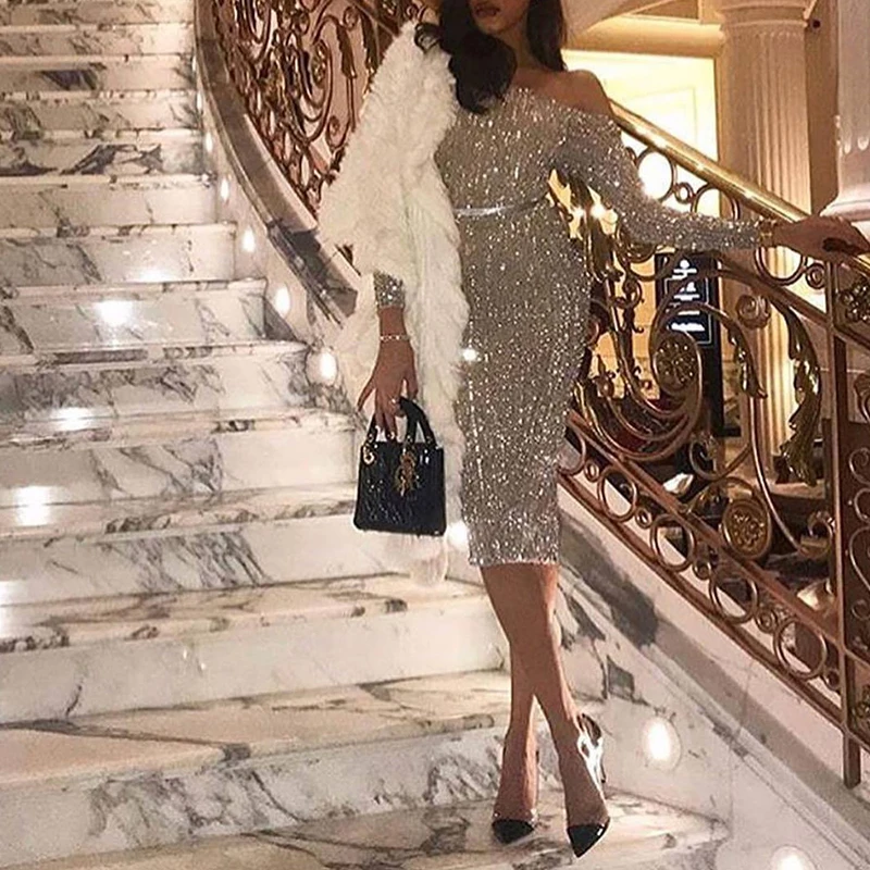 * Описание товара:Осенне-зимние женские блестящие Сексуальные вечерние платья с открытыми плечами