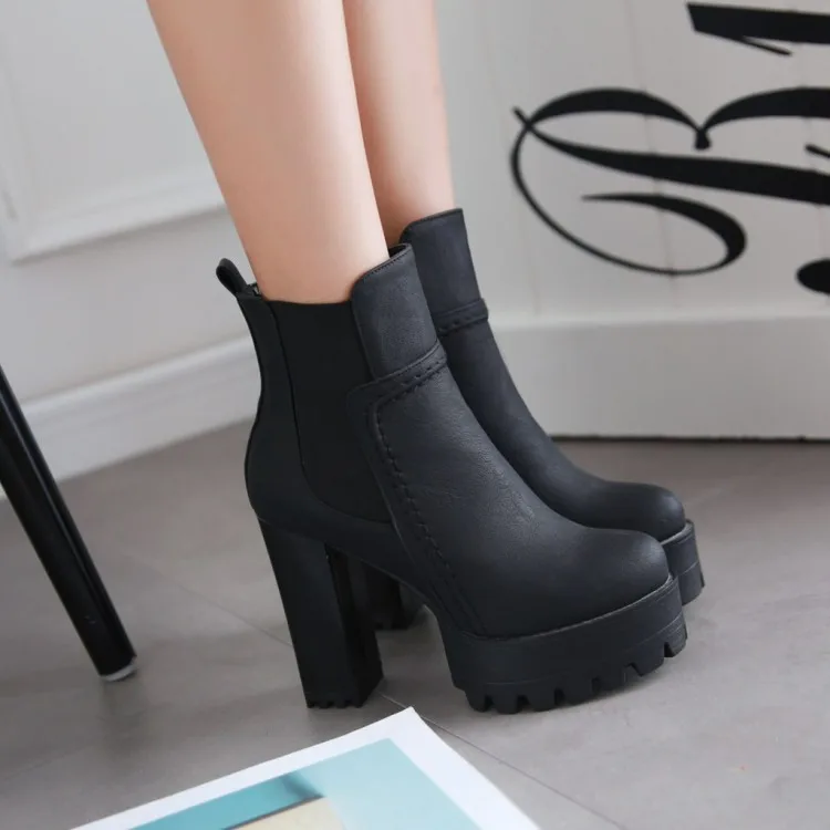 Женские ботинки челси из ПУ кожи на высоком каблуке с квадратным носком молнии
