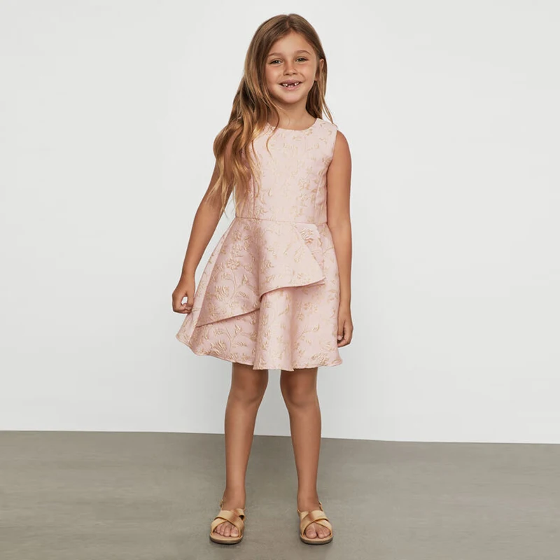 Жаккардовая ткань, круглый вырез Растительный узор с блестящим золотым волоконным шитьем Молния сзади, длина до колена Платье без рукавов Ручная стирка в холодной воде
