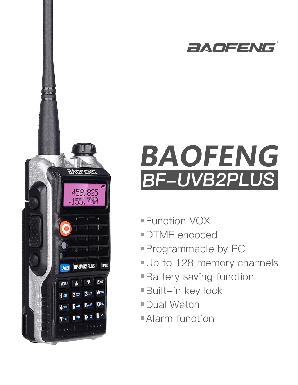 Baofeng UV-B2Plus walkie talkie 8W Двухдиапазонный 136-174/400-520mhz 4800mah BAOFENG UV5R обновленная версия Ham Radio