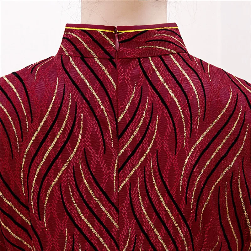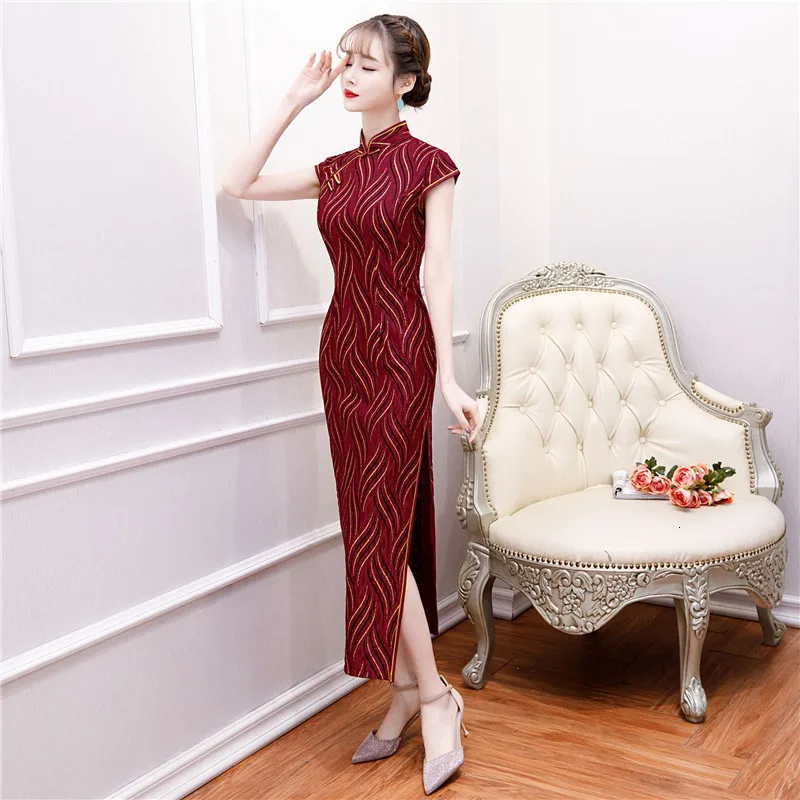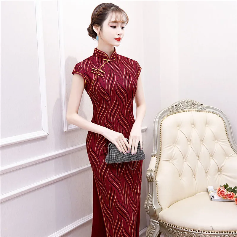 Красное винтажное атласное летнее женское традиционное китайское платье Ципао с коротким рукавом, длинное свадебное платье Ципао, большие размеры