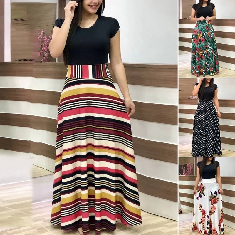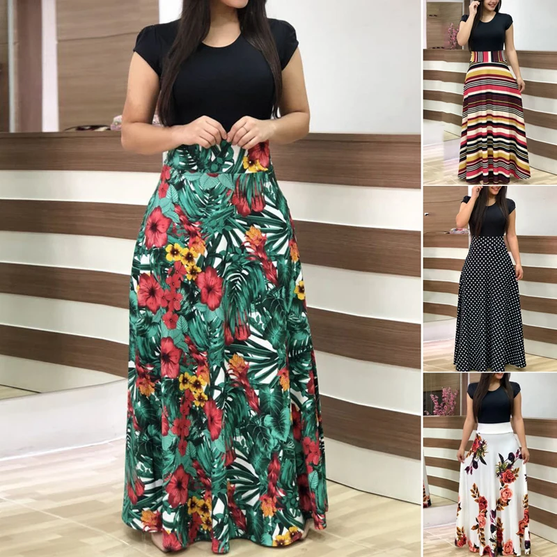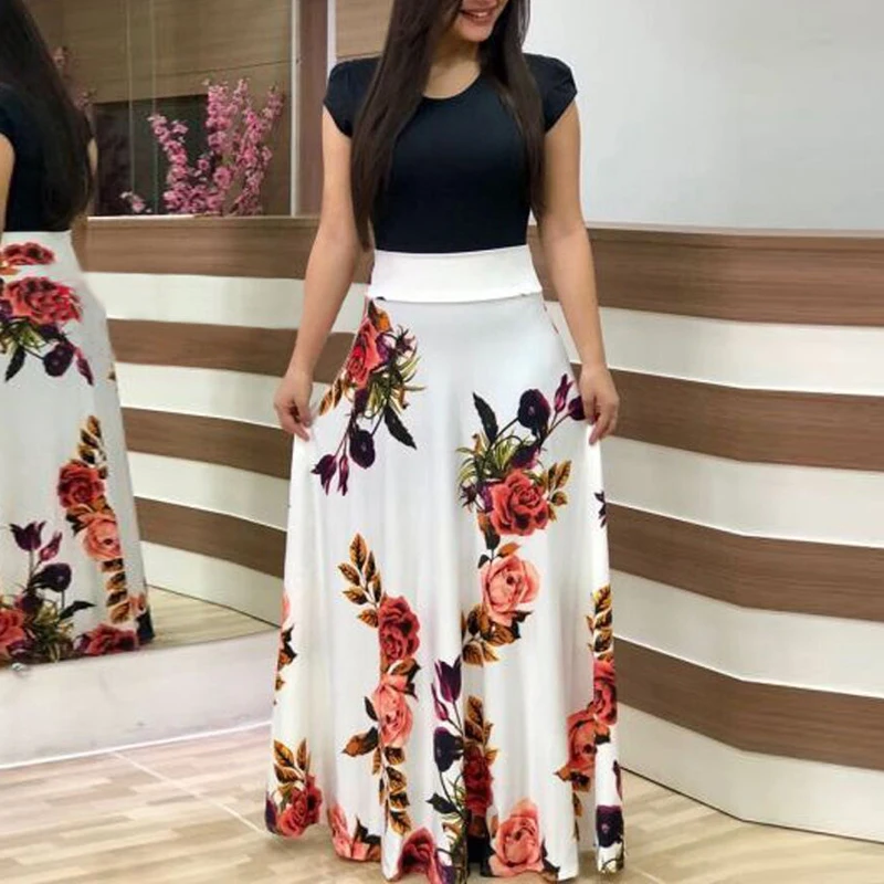 * Описание товара: модное женское Пляжное Платье макси с круглым вырезом и цветочным принтом