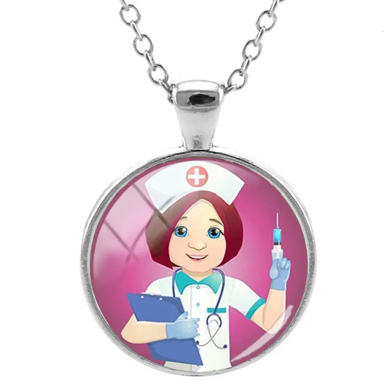 TAFREE New Super Infirmiere Nurse Pendants Necklaces Glass Cabochon Charm Chain Necklace Statement French Letter Jewelry SI16