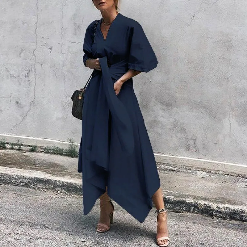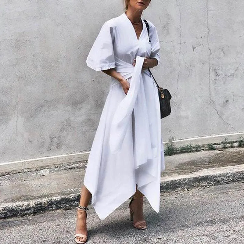 * Описание товара: женское сексуальное платье с v-образным вырезом и асимметричным подолом, с рукавами-колокольчиками, вечернее Клубное Повседневное платье